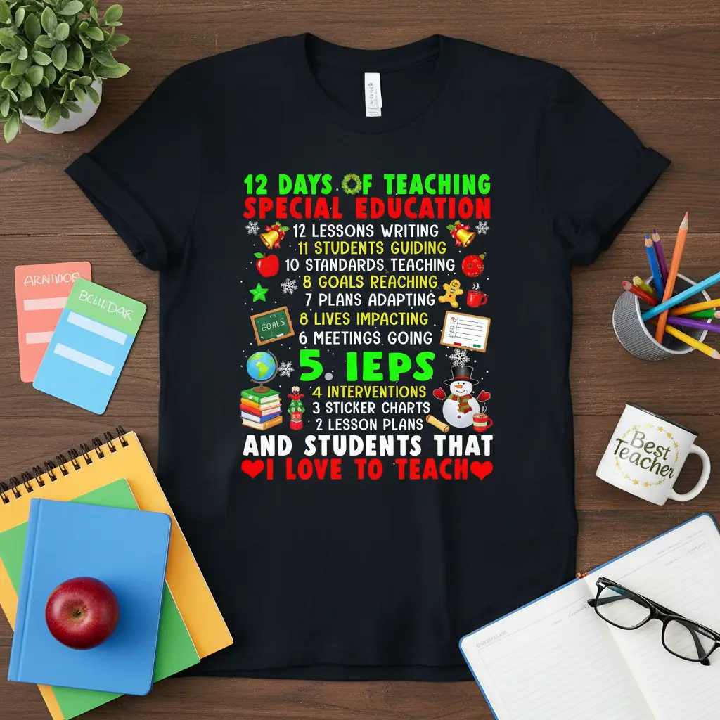 Searching for the perfect gift for a special education teacher? Look no further. This “12 Days of Teaching Special Education” t-shirt is a thoughtful and unique present that will be cherished. It acknowledges their hard work, celebrates their passion, and brings a smile to their face. Order yours today and let a special educator know how much their dedication is valued.