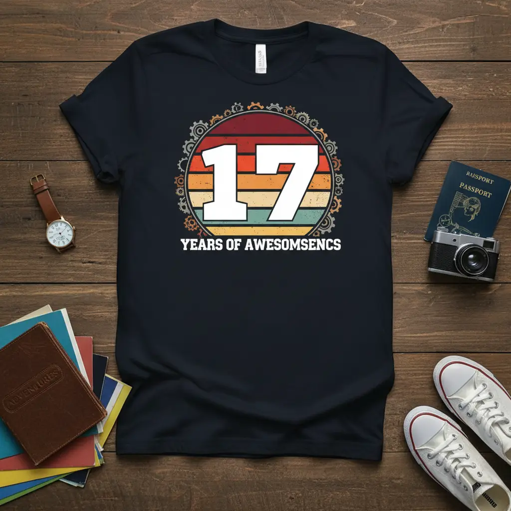 17 Years Of Awesomsencs is more than just a number; it’s a milestone filled with unforgettable moments and personal growth. This specially designed t-shirt celebrates that incredible journey, making it the perfect way to commemorate a significant birthday. The retro aesthetic and bold typography capture the spirit of turning seventeen, offering a unique and stylish way to express pride in reaching this awesome age. It’s a fantastic gift that combines comfort with a memorable statement piece.