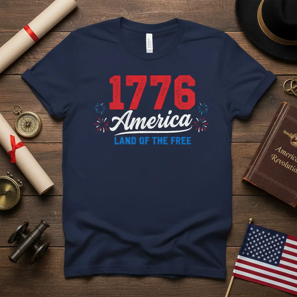 Pick from Black, Navy, Royal, Dark Heather, Red, and White to match your mood and wardrobe staples. Each colorway keeps the 1776 America LAND OF THE FREE design clear and photo-ready for everyday wear.
