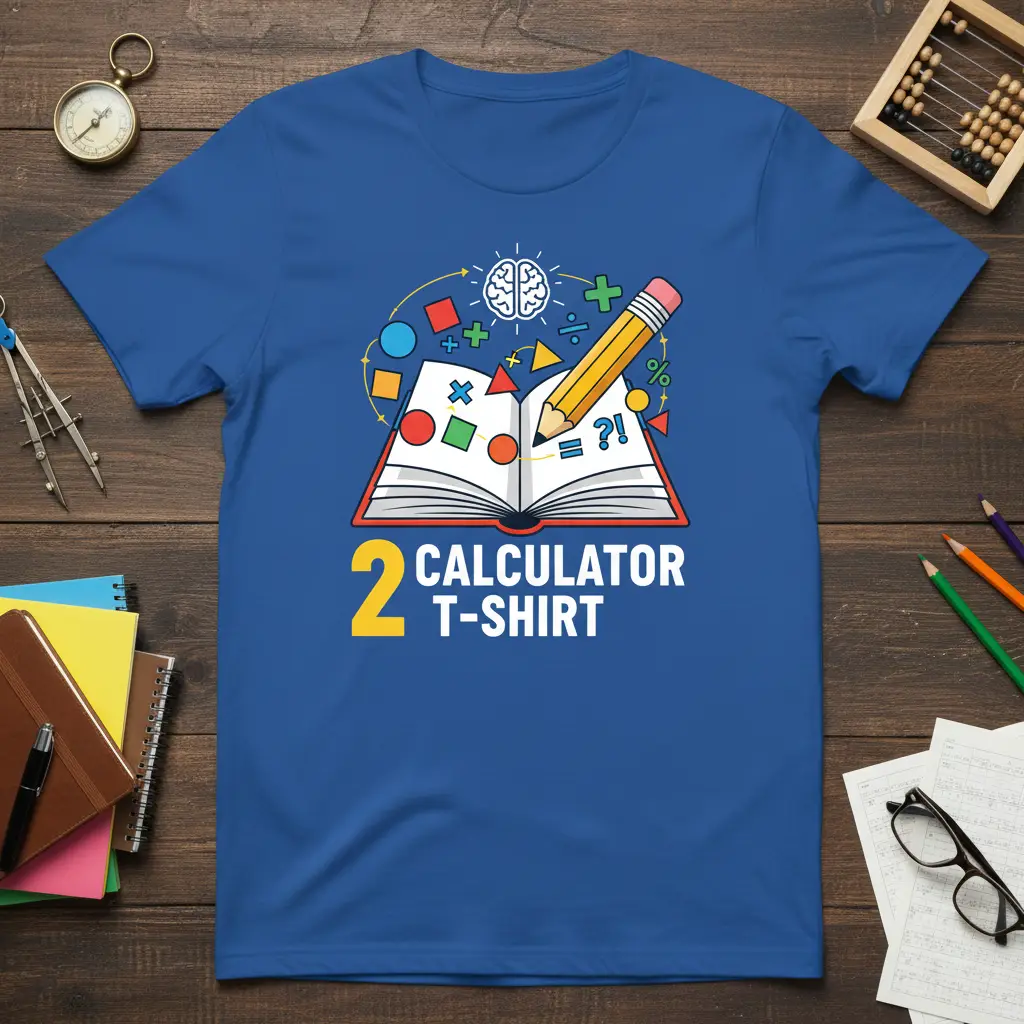 2 CALCULATOR T-SHIRT proudly celebrates the world of numbers and equations, making it an ideal choice for educators, students, and anyone who finds joy in mathematics. This design captures the essence of learning and problem-solving, featuring a whimsical collection of educational elements. It’s more than just apparel; it’s a statement of intellectual curiosity and a nod to the beauty of arithmetic and algebra. Perfect for gifting or personal wear, this tee is sure to spark conversations and smiles among fellow math enthusiasts.