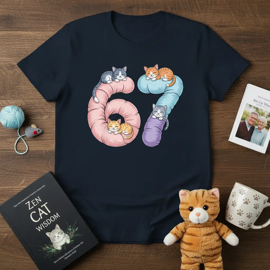 67 is a number that signifies a special milestone, and what better way to celebrate than with a design that perfectly captures the joy and charm of our feline friends? This unique t-shirt is crafted for those who adore cats and are looking for a fun, memorable way to mark a 67th birthday or simply showcase their love for all things feline. It’s more than just apparel; it’s a wearable celebration of a significant age, brought to life with adorable kittens. The design thoughtfully combines numerical significance with the undeniable cuteness of cats, creating a piece that is both stylish and sentimentally appealing for any cat lover.