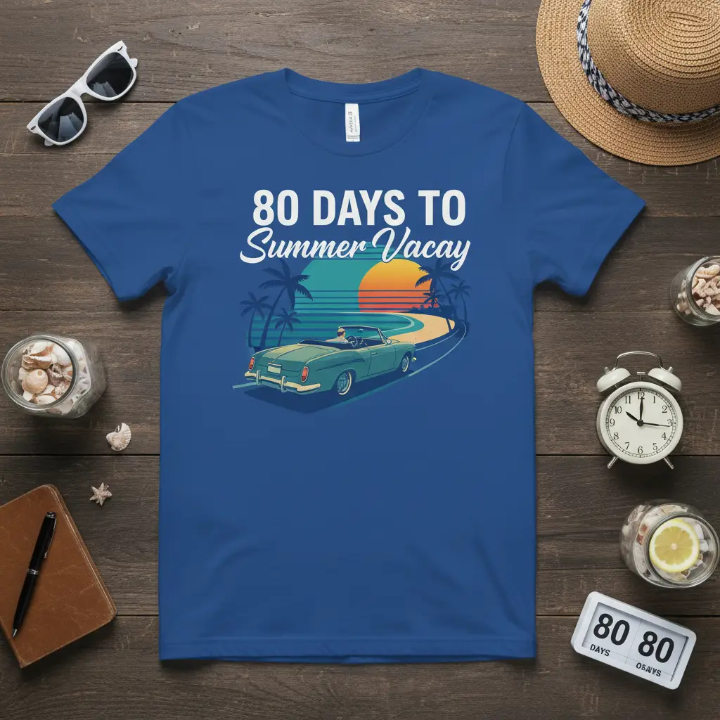 This tee is more than just a piece of apparel; it’s a wearable countdown timer for your most anticipated season. The bold text “80 DAYS TO Summer Vacay” serves as a constant, cheerful reminder of the fun that awaits. It’s designed for comfort and style, making it perfect for casual outings, road trips, or simply lounging while dreaming of your next adventure. Get ready to make some memories!