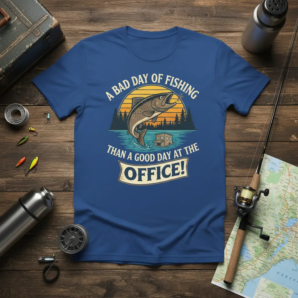While perfect for a day out fishing, this t-shirt is also incredibly versatile. Wear it to casual gatherings, barbecues, or simply as comfortable everyday wear. Its unique design and relatable message make it a conversation piece wherever you go. It’s a testament to the fact that a good day of fishing beats a bad day at the office every single time.