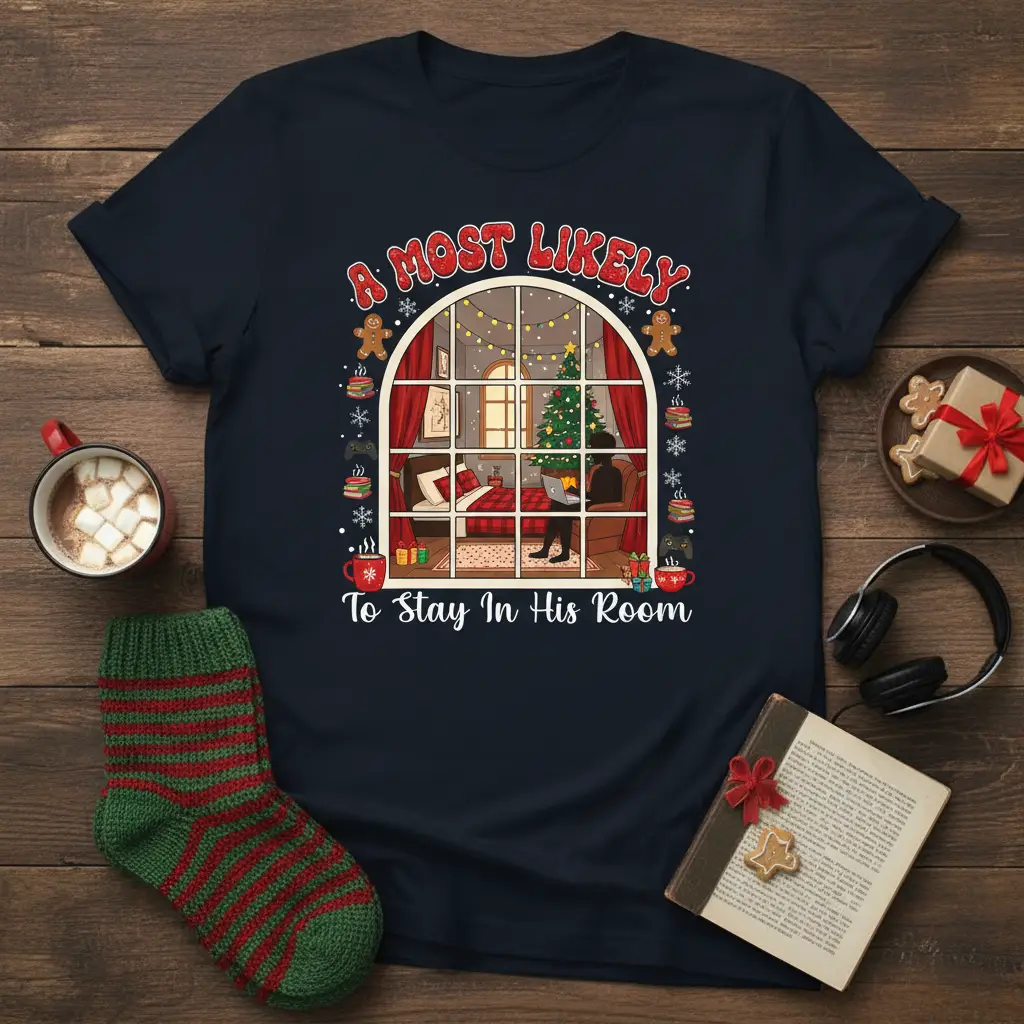 A Most Likely to Stay in His Room Christmas T-Shirt