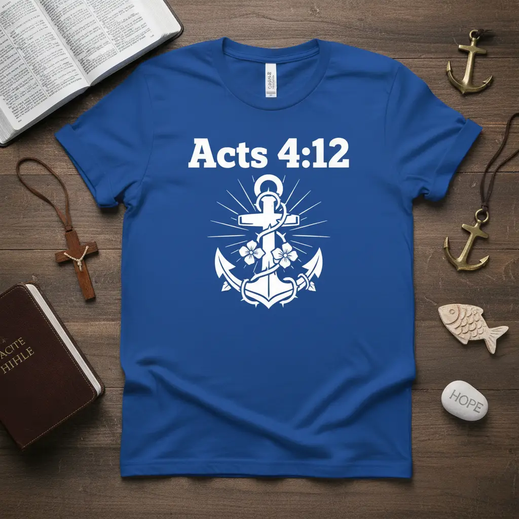 Acts 4:12 serves as a profound reminder of unwavering faith and the steadfast hope found in scripture, beautifully captured on this comfortable and stylish t-shirt. This apparel is designed for those who wish to wear their beliefs proudly, offering a unique way to share a powerful message of spiritual strength. The striking combination of the biblical verse and a symbolic anchor creates a design that is both meaningful and visually appealing, making it a perfect addition to any faith-inspired wardrobe. It’s more than just a shirt; it’s a statement of conviction and a conversation starter for fellow believers.