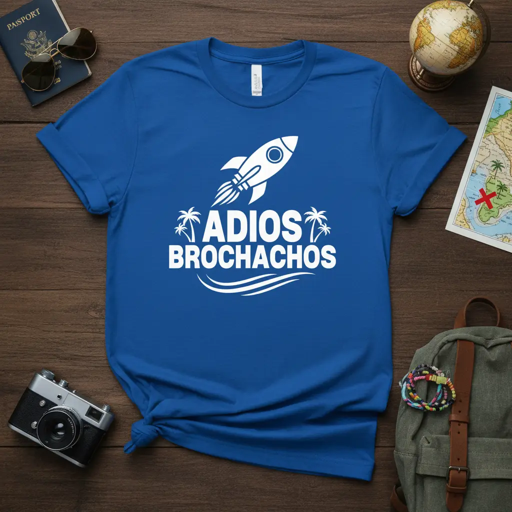 The “Adios Brochachos” design is a celebration of freedom and new horizons. It’s a perfect way to commemorate milestones like retirement, a career change, or simply the start of an unforgettable vacation. The playful rocket graphic symbolizes launching into the unknown with excitement and optimism. This tee is designed to be a reminder that every ending is just a new beginning waiting to unfold.