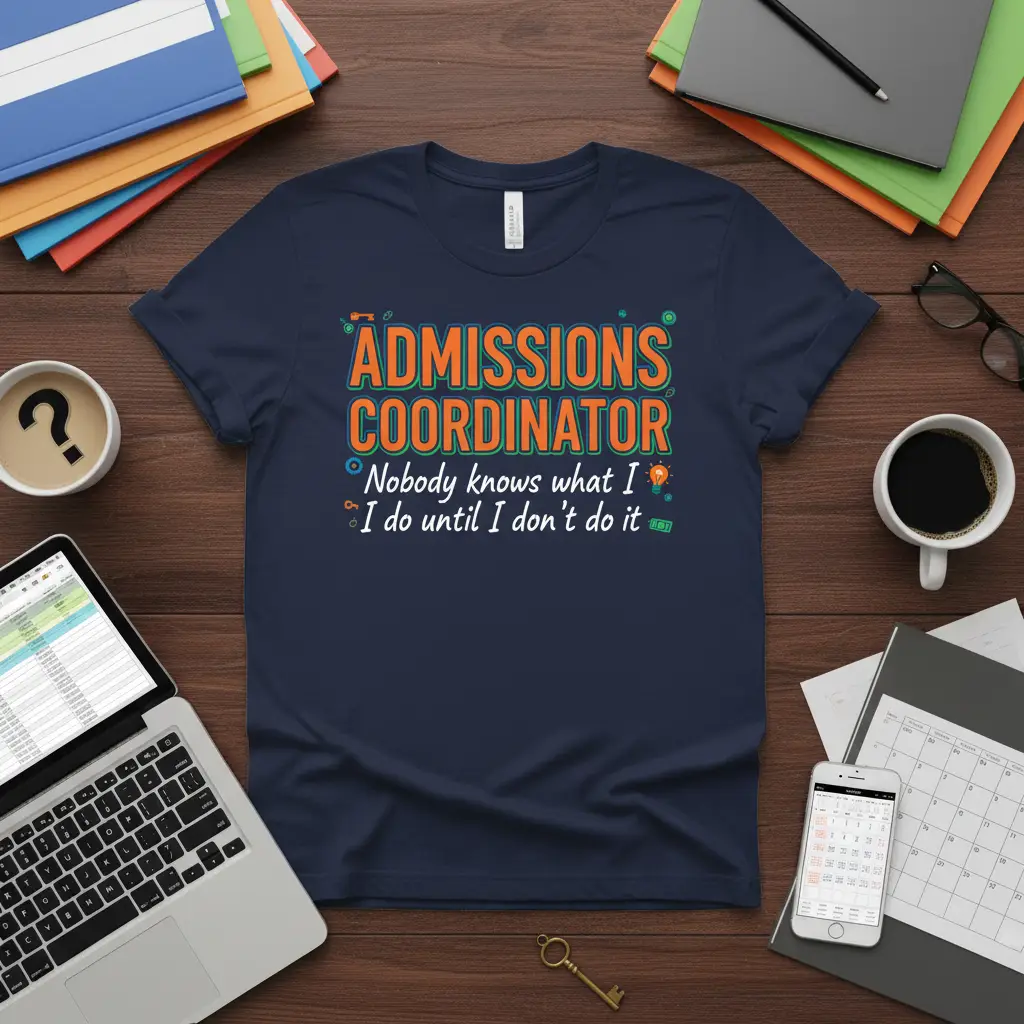 Every institution relies on dedicated admissions coordinators to manage applications, guide prospective students, and ensure a seamless enrollment process. This t-shirt celebrates these hardworking individuals with a witty and relatable quote that speaks volumes about their role. It’s a fantastic way to acknowledge the unsung heroes who often go the extra mile, ensuring that everything functions correctly behind the scenes.