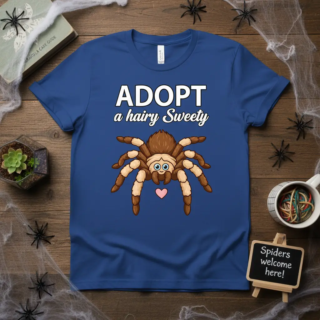 ADOPT a hairy Sweety this adorable t-shirt designed for true spider enthusiasts and tarantula lovers. It captures the heartwarming sentiment of bringing a unique pet into your life, celebrating the charm of these fascinating creatures. This tee is more than just apparel; it’s a conversation starter and a declaration of love for those who appreciate the beauty in the unconventional. Embrace your passion and wear your affection for your hairy companions with pride and a touch of playful sweetness.