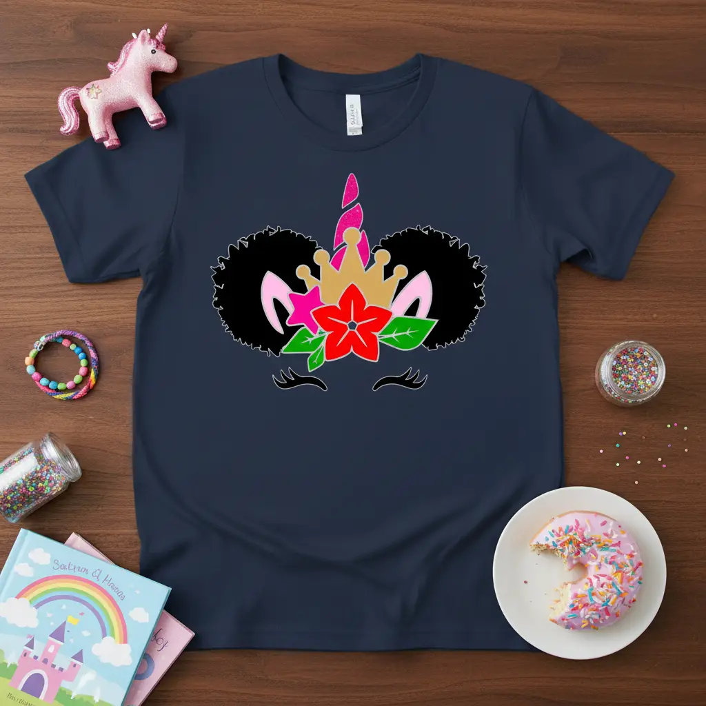 Afro Unicorn Girl Crown Graphic Tee Cute Magical Gift