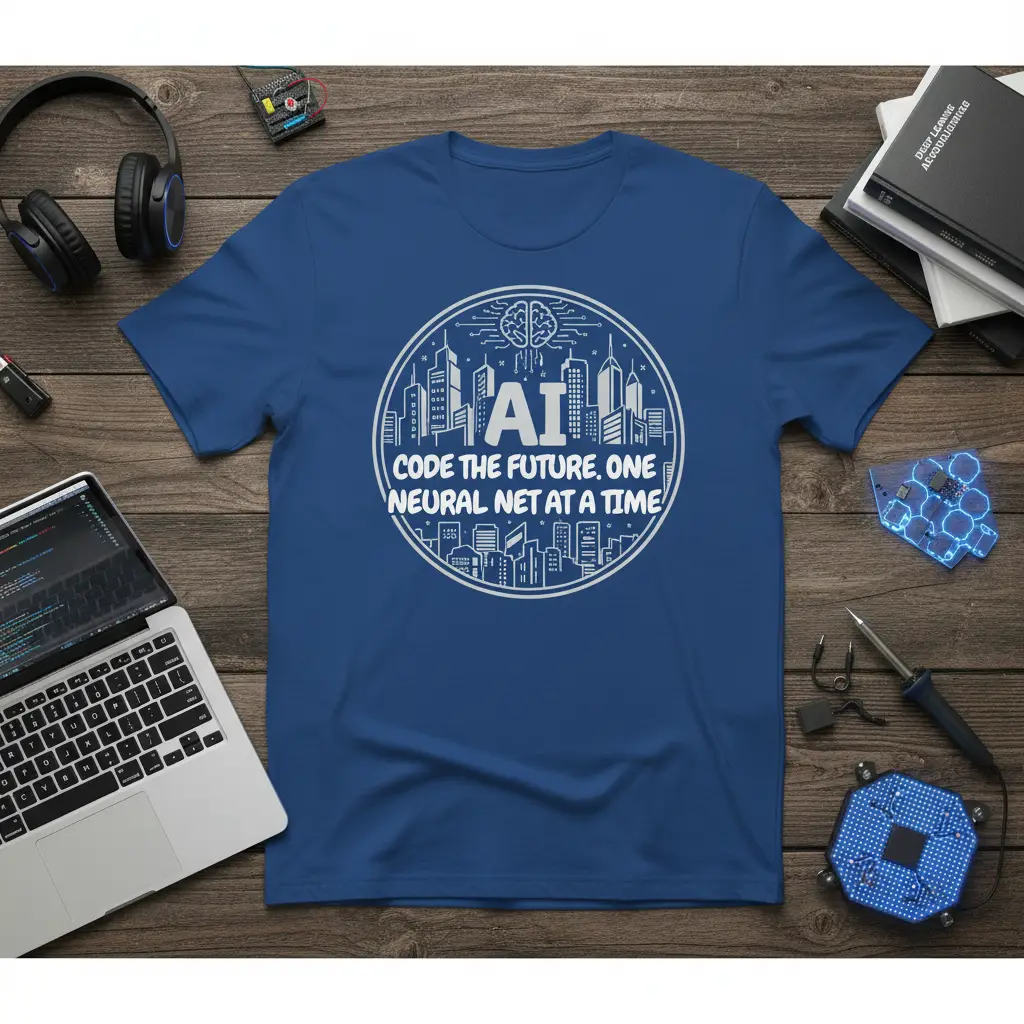 The phrase “CODE THE FUTURE, ONE NEURAL NET AT A TIME” speaks to the iterative and meticulous nature of developing advanced AI. It’s a reminder that progress is built step-by-step, through dedicated effort and deep understanding of complex systems. This tee is perfect for software developers, data scientists, and tech enthusiasts who appreciate the beauty and challenge of artificial intelligence.