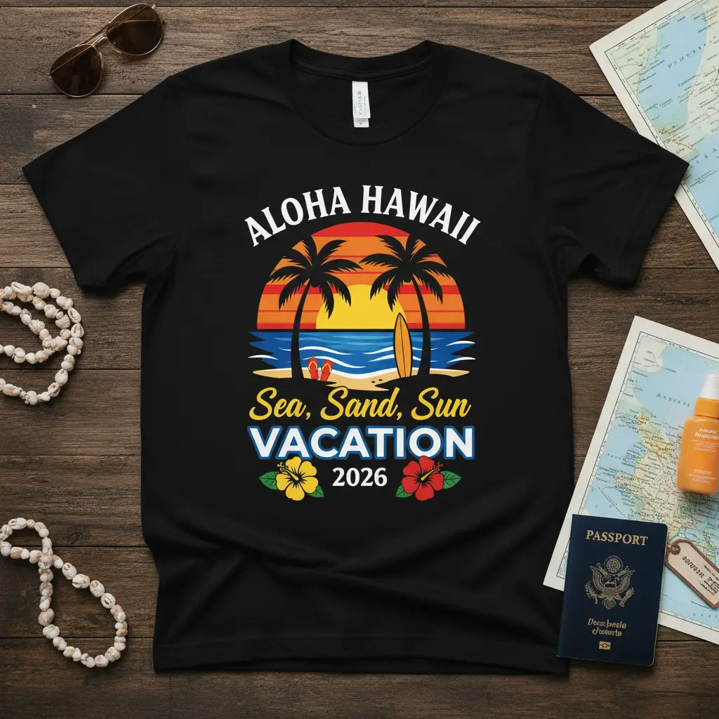 ALOHA HAWAII Sea, Sand, Sun VACATION 2026 is more than just a phrase; it’s an invitation to embrace the ultimate tropical escape. This t-shirt is designed to capture the essence of paradise, making it the perfect companion for your unforgettable journey. Imagine yourself on a sun-drenched beach, the gentle sound of waves, and the warmth of the sun on your skin – this tee brings that feeling to life. It’s crafted for comfort and style, ensuring you look and feel your best as you create cherished memories. Get ready to experience the magic of Hawaii in ultimate comfort and vibrant style.