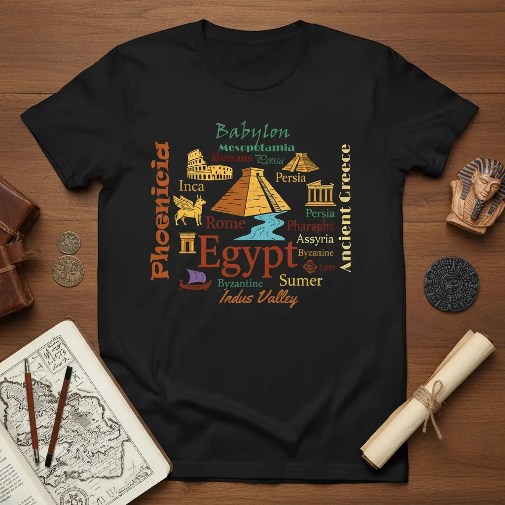 The educational aspect of this design is paramount, offering a fun and accessible way to engage with historical knowledge. It’s a fantastic conversation starter for history buffs, educators, and students alike. By wearing this tee, you’re not just making a fashion statement; you’re expressing a deep appreciation for the world’s rich historical tapestry. The blend of text and graphics creates an engaging visual experience that celebrates the achievements and legacies of these ancient peoples.