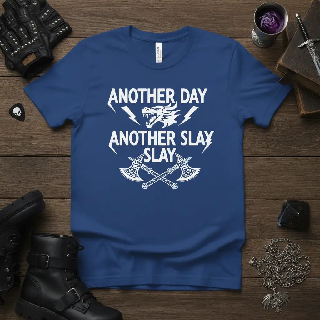 Pick from Black, Navy, Royal, Dark Heather, Red, and White to match your mood and wardrobe staples. Each colorway keeps the Another Day Another Slay Slay design clear and photo-ready for everyday wear.