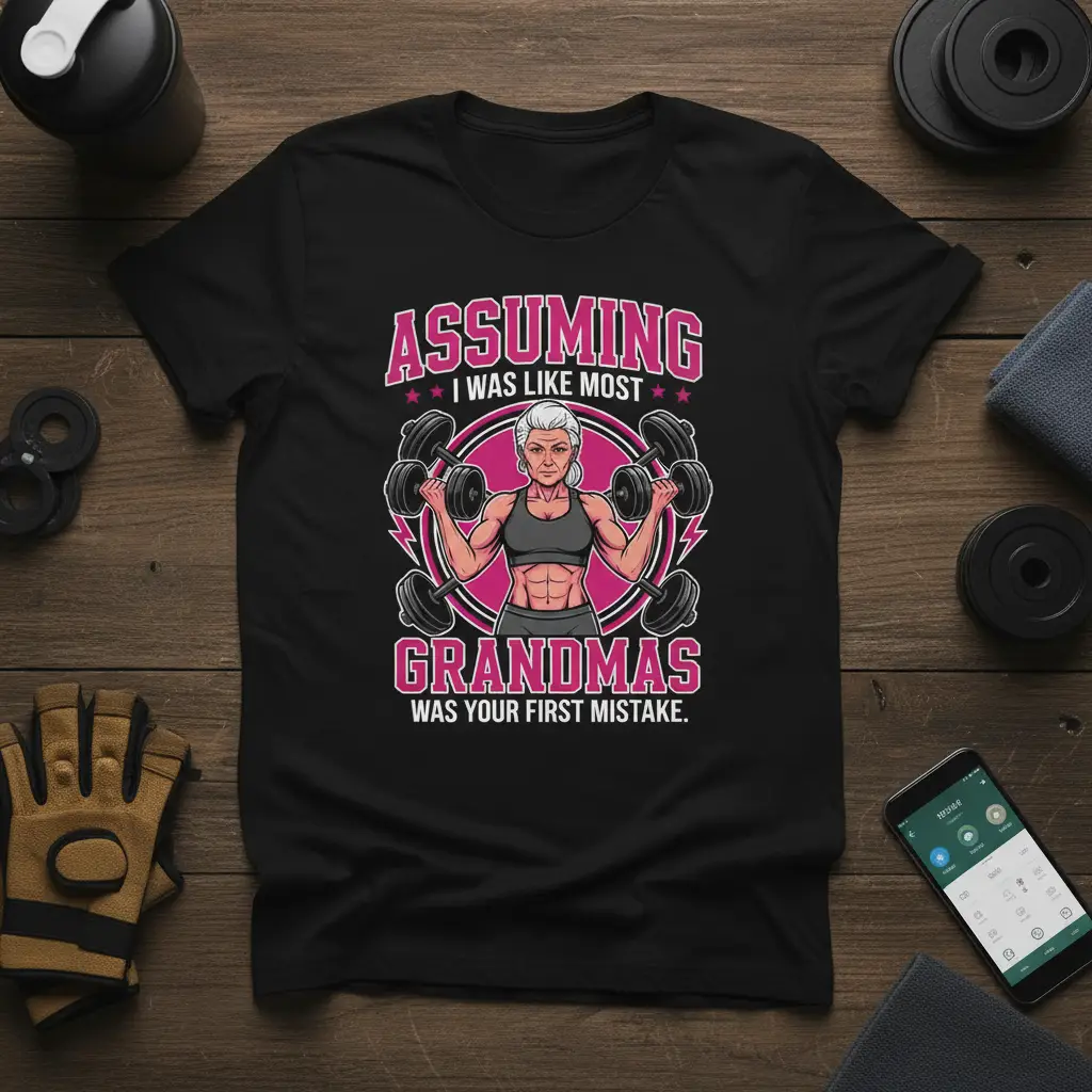 ASSUMING I WAS LIKE MOST GRANDMAS WAS YOUR FIRST MISTAKE. – Assuming I Was Like Most Grandmas Was Your First Mistake T-Shirt is more than just apparel; it’s a declaration of strength, fitness, and the surprising power of grandmothers. This unique design celebrates the active, strong, and often underestimated grandmas who are dedicated to their health and well-being. It’s perfect for those who love to hit the gym, lift weights, and prove that age is just a number when it comes to fitness goals. The bold statement is sure to turn heads and spark conversations, making it a fantastic gift or a personal statement piece.