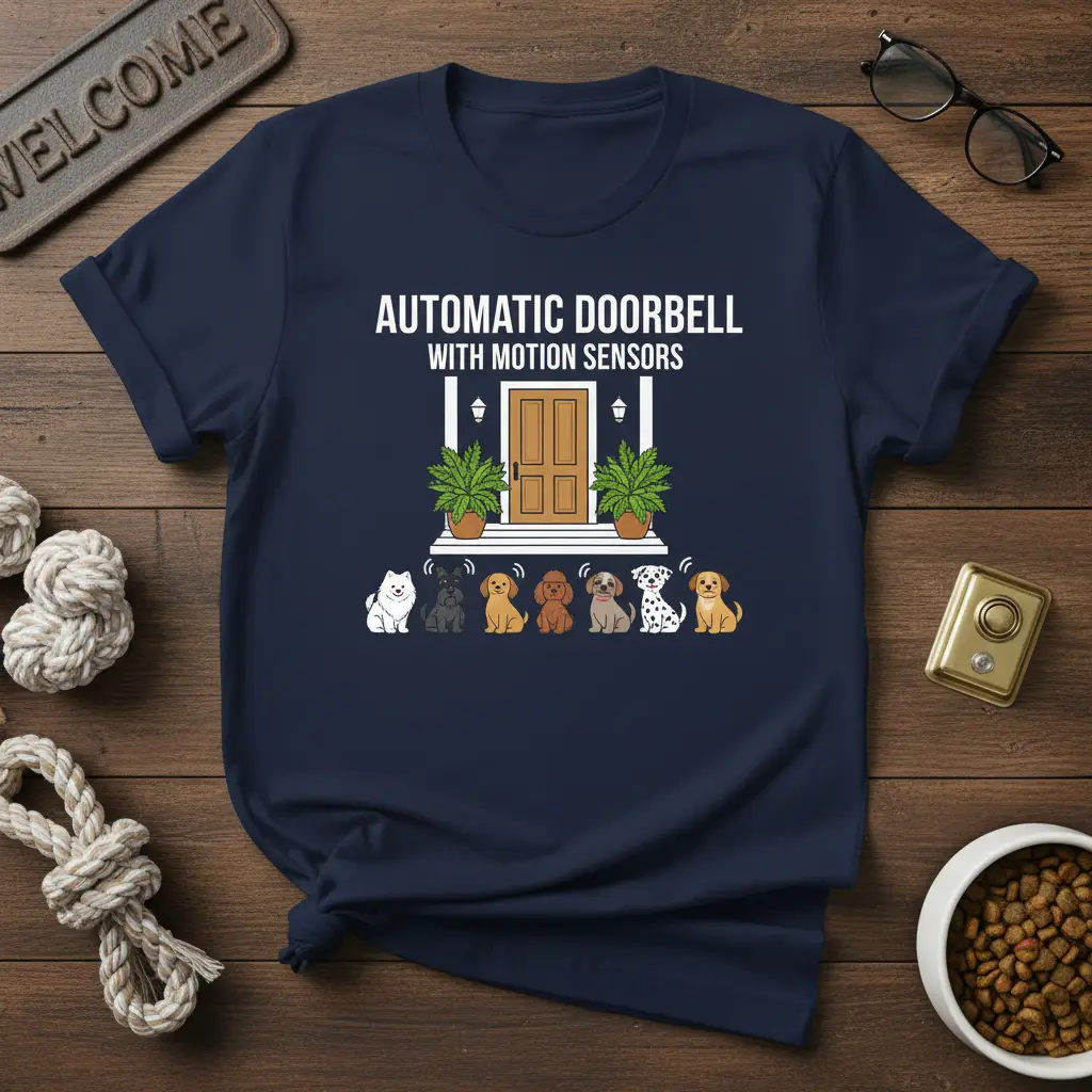 Don’t miss out on this opportunity to own a piece of apparel that perfectly blends humor, style, and a deep love for dogs. This shirt is a testament to the joy and laughter our pets bring into our lives. Order your Automatic Doorbell With Motion Sensors t-shirt now and wear your dog-loving heart on your sleeve. It’s the perfect way to celebrate the furry sentinels of your home and bring a smile to everyone you meet.