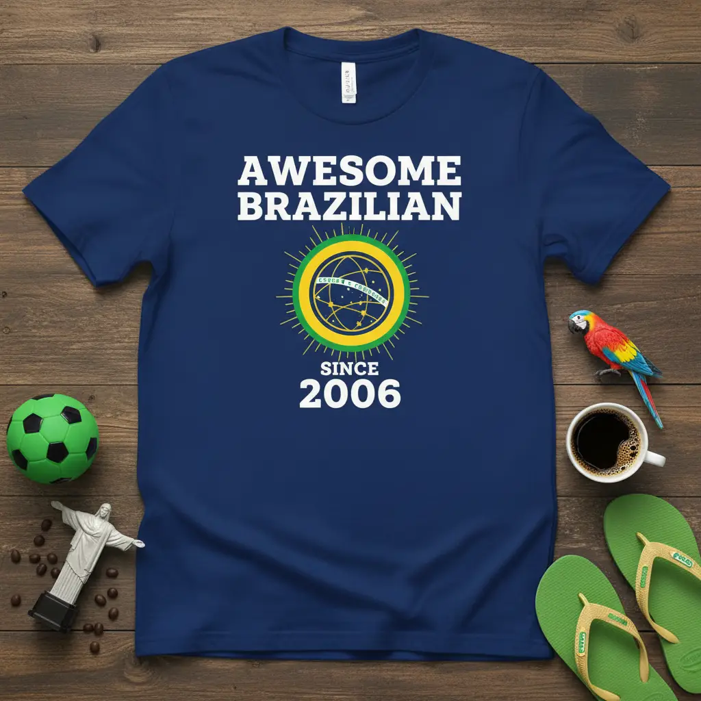 The “AWESOME BRAZILIAN SINCE 2006” design is a powerful statement for anyone who identifies with Brazil. It’s a unique way to commemorate your birth year while showcasing your love for the country’s rich culture and history. This t-shirt serves as a personal badge of honor, connecting you to a community of proud Brazilians.