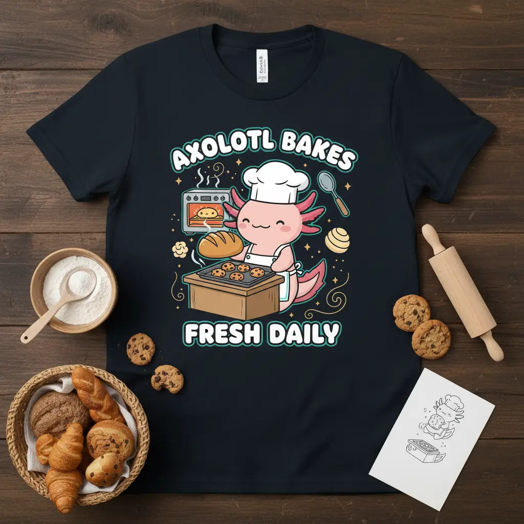 Axolotl Bakes Fresh Daily: The Perfect Tee for Bakers and Animal Lovers