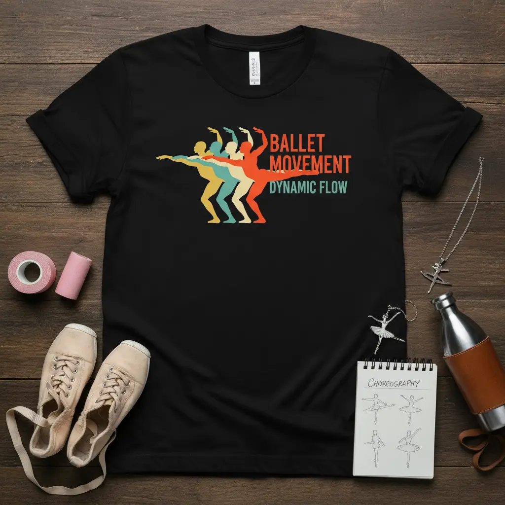 Additionally, the shirt comes in several popular colors to suit your personal style. Select from timeless Black, classic Navy, bold Red, clean White, subtle Dark Heather, or vibrant Royal. Each color option offers a unique look while showcasing the striking “BALLET MOVEMENT DYNAMIC FLOW” graphic with equal flair. Mix and match these options to build a collection that reflects your unique dance spirit.