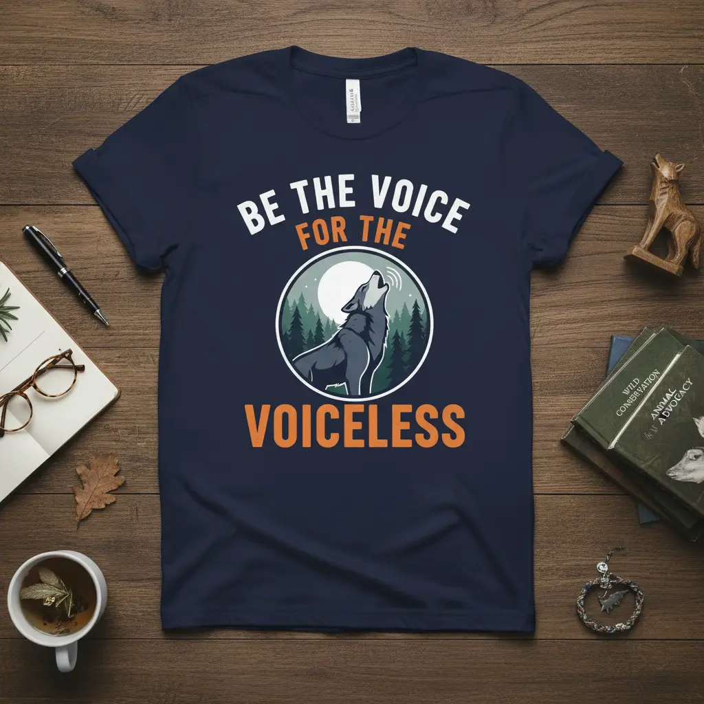 The message “BE THE VOICE FOR THE VOICELESS” is a call to action for empathy and support for all animals, from majestic wolves to domestic companions. This t-shirt is crafted for comfort and durability, making it suitable for everyday wear, rallies, or casual gatherings. It’s an excellent way to initiate conversations about animal welfare and encourage greater consciousness regarding our impact on the animal kingdom.