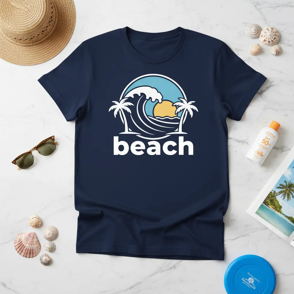 Pick from Black, Navy, Royal, Dark Heather, Red, and White to match your mood and wardrobe staples. Each colorway keeps the beach design clear and photo-ready for everyday wear.