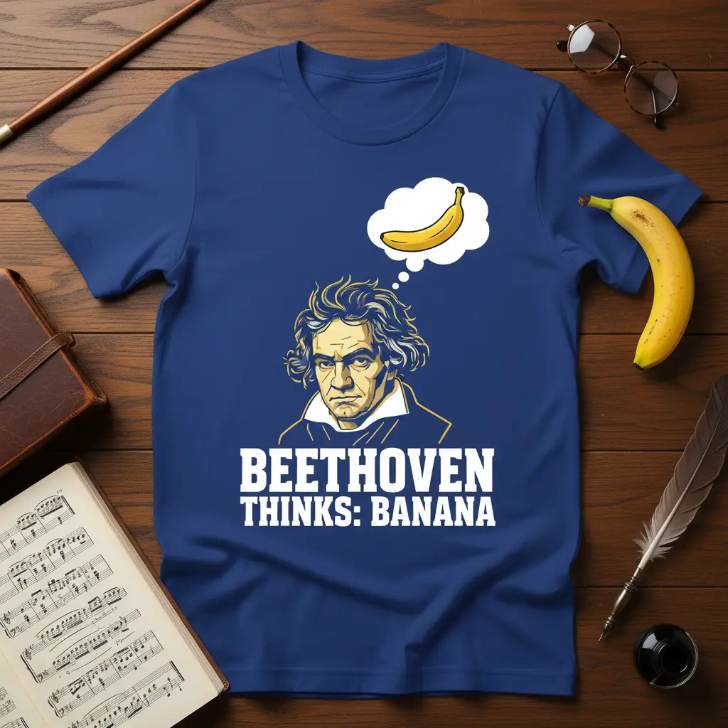 This humorous Beethoven Thinks Banana t-shirt is a must-have for classical music aficionados and history enthusiasts. Featuring the iconic composer with a playful thought bubble, it’s a comfortable and unique way to show your appreciation for music and a good laugh. It makes a fantastic gift for any occasion.