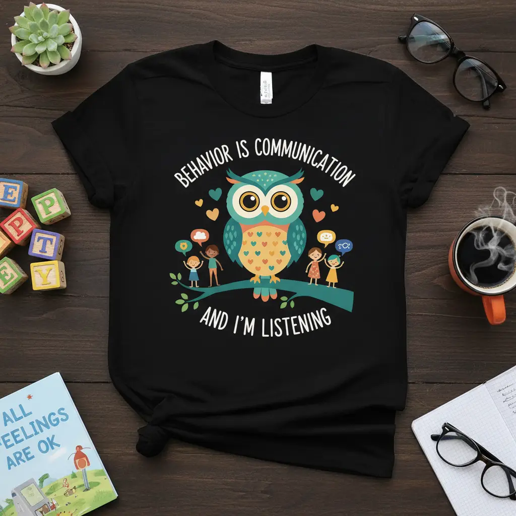 This unique t-shirt is designed to resonate with professionals and advocates who champion communication and empathy. The phrase “Behavior is Communication and I’m Listening” is central to many therapeutic and educational approaches, making this garment a perfect emblem for those who embody these principles. It’s a conversation starter, a declaration of intent, and a subtle yet impactful way to share a valuable message with the world. The charming owl graphic adds a touch of wisdom and warmth, making the message approachable and endearing.