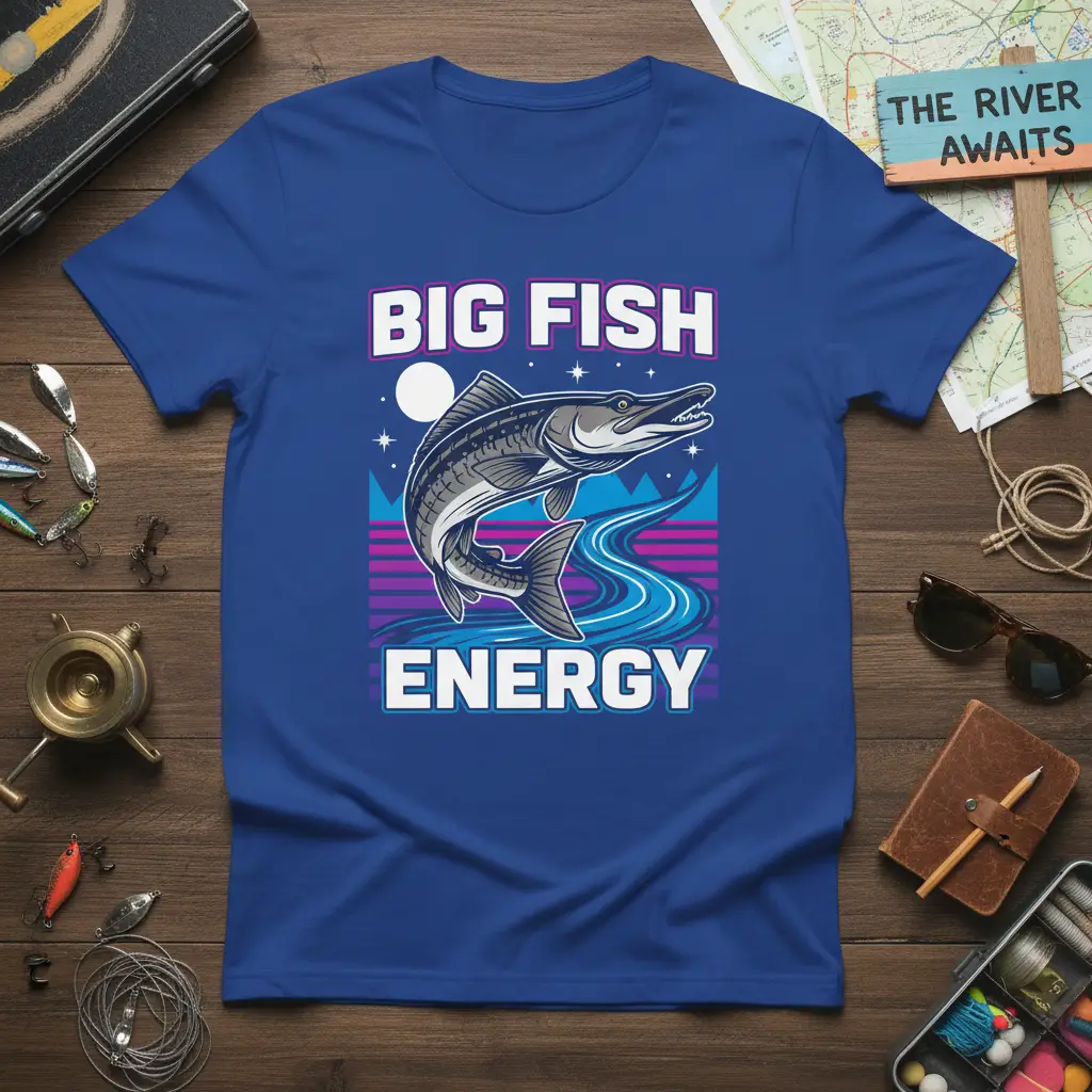 Wearing this BIG FISH ENERGY tee means you’re part of a community that understands the dedication, patience, and sheer joy of fishing. It’s a conversation starter among fellow anglers and a clear signal of your passion. The vibrant design is sure to turn heads whether you’re at the lake, river, or simply out and about. This shirt is a testament to the rewarding experiences fishing provides.
