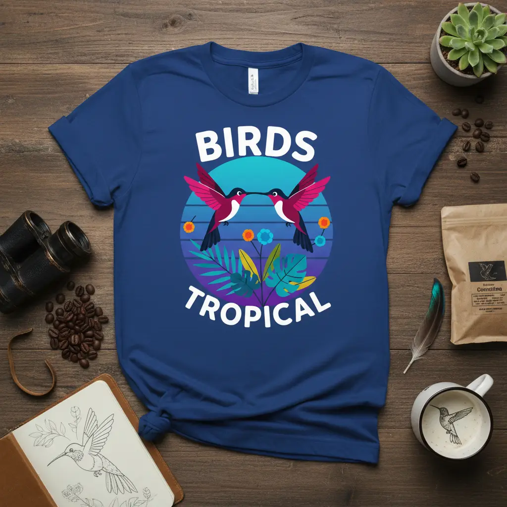 The combination of vibrant colors and detailed illustration makes this t-shirt a standout piece. It appeals to a broad audience, from serious ornithologists to casual admirers of nature’s artistry. Wearing this shirt is a way to carry a piece of the tropics with you, offering a daily dose of inspiration and a connection to the wild.