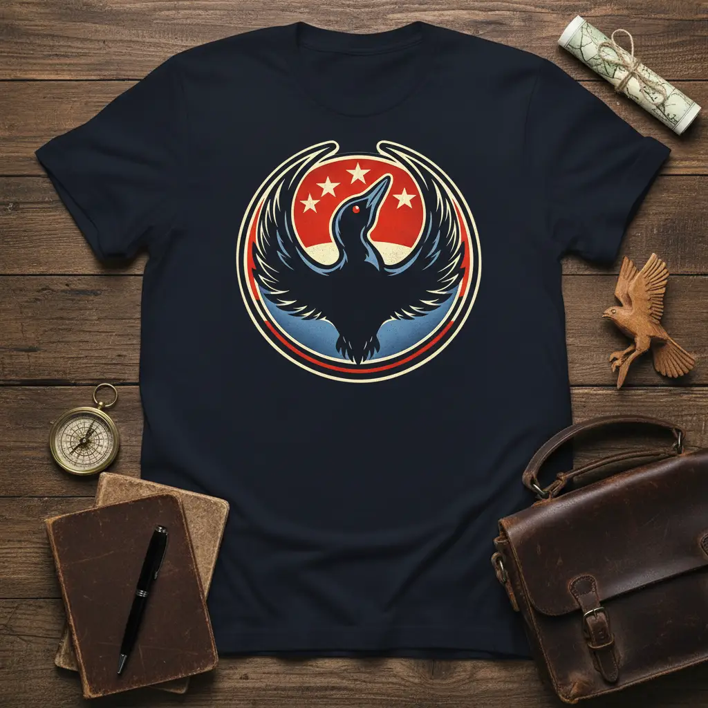 Black Bird Emblem design is a captivating piece that merges vintage aesthetics with a bold graphic statement. This t-shirt is perfect for anyone who appreciates unique artwork and retro-inspired fashion. The intricate circular emblem, featuring a stylized black bird with outstretched wings, is set against a patriotic color palette of red, white, and blue, complete with subtle star accents. It’s a design that speaks volumes without uttering a single word, making it a conversation starter wherever you go. This tee offers both comfort and a distinctive style, ensuring you stand out from the crowd with its artistic appeal.