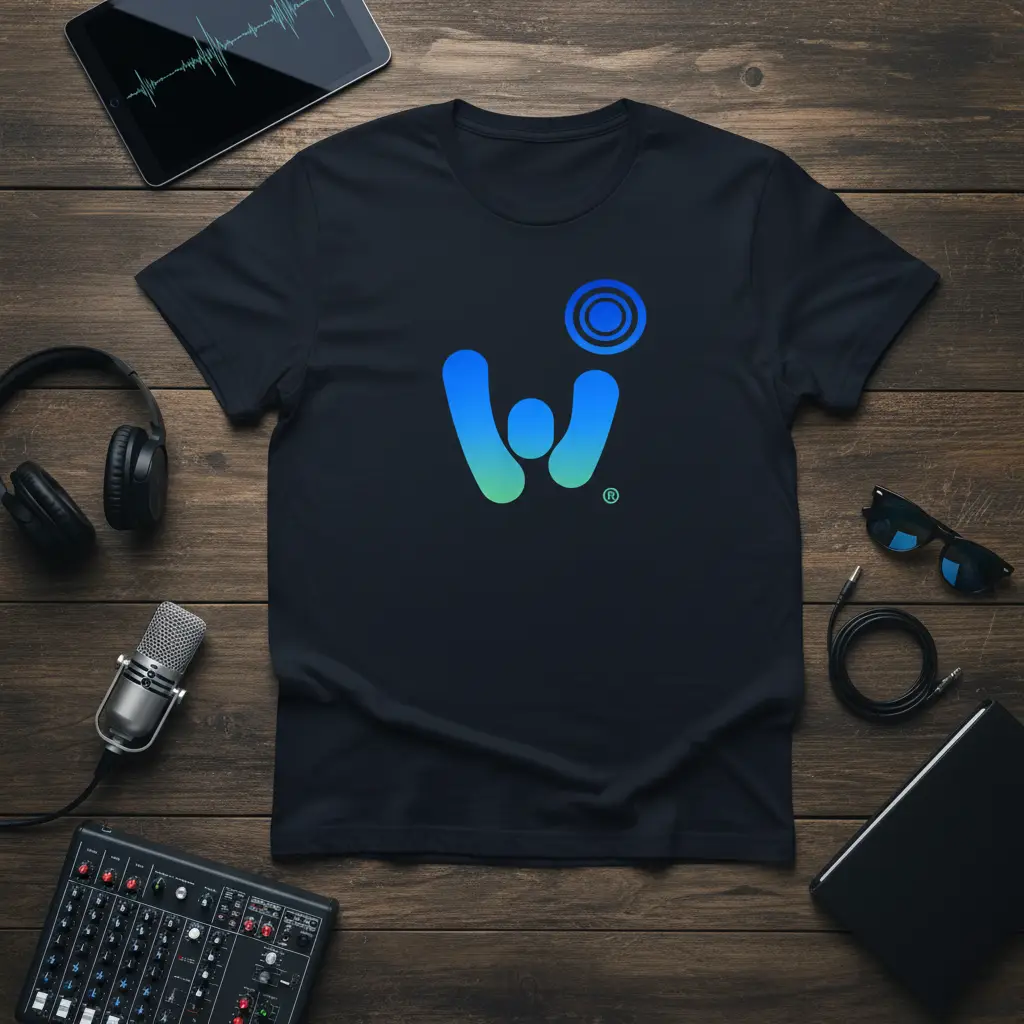 The central focus of this design is the unique ‘W’ emblem, rendered in a smooth gradient that transitions from a deep blue to a refreshing green. Above it sits a concentric circular design, adding a layer of visual depth and sophistication. This combination evokes a sense of technology, audio waves, and forward-thinking design, making it instantly recognizable and appealing to those in the audio and tech fields. It’s a symbol that represents connection, innovation, and the art of sound creation. The clean lines and modern aesthetic ensure it looks sharp on any garment.