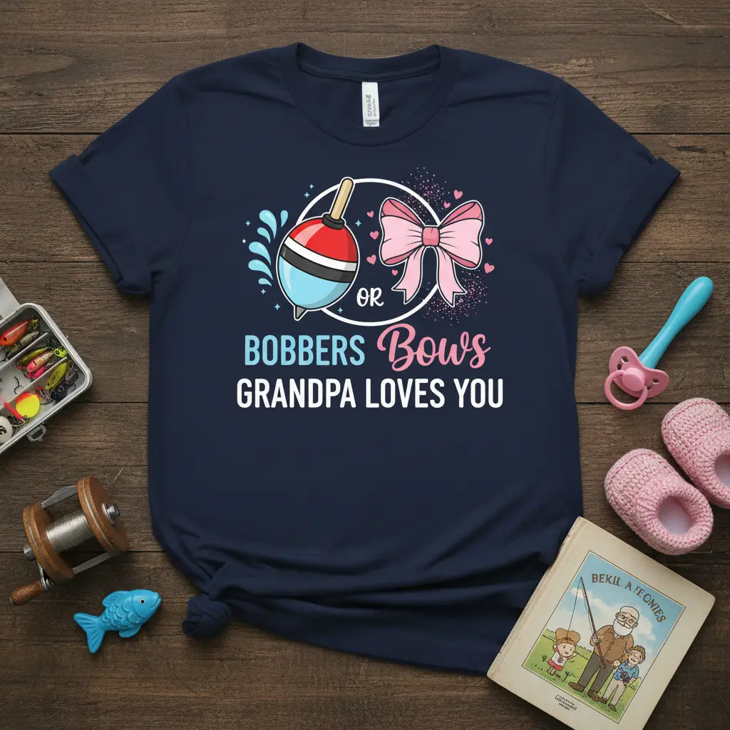 Don’t miss out on the chance to celebrate this incredible milestone. The “Bobbers or Bows Grandpa Loves You” t-shirt is the perfect way to share your excitement and create lasting memories. It’s a thoughtful gift for any soon-to-be grandpa, adding a touch of fun and love to the gender reveal celebration. This comfortable and stylish tee is ready to become a cherished part of your family’s story. Grab yours now and share the joy!