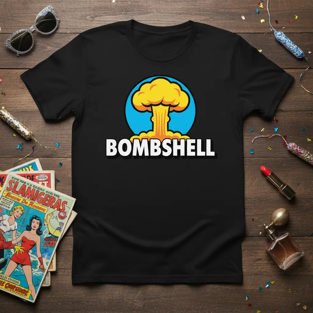 Make an unforgettable impact with the BOMBSHELL graphic t-shirt, a bold statement piece designed for those who dare to stand out. This tee features a striking retro explosion graphic that instantly commands attention, merging vintage aesthetics with a powerful message. It’s more than just apparel; it’s a conversation starter and a declaration of your unique style. Crafted for comfort and durability, this shirt is perfect for everyday wear or as a standout addition to any collection. Express your appreciation for iconic pop culture imagery and bold design choices with this must-have item.