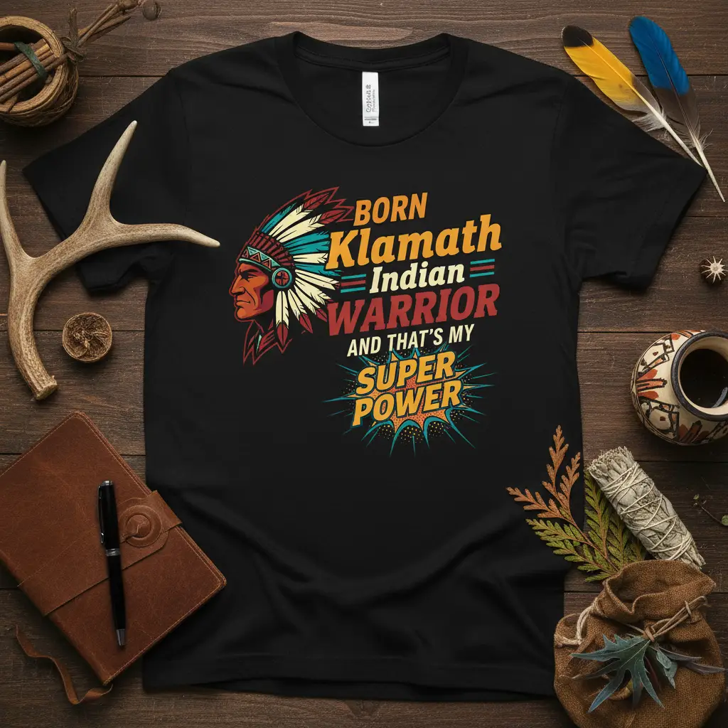 Born Klamath Indian Warrior And That’s My Super Power proudly adorns this striking t-shirt, designed for those who embrace their rich heritage and unique strengths. This apparel is more than just clothing; it’s a declaration of identity and a celebration of the powerful spirit inherent in the Klamath people. The design blends vibrant, retro-inspired graphics with assertive typography, making a bold statement about pride and resilience. It serves as a meaningful way to connect with ancestral roots and showcase a personal sense of power. Wear it to honor your heritage and let your inner warrior shine.