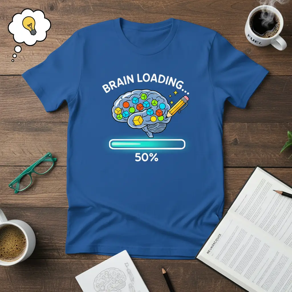 This Brain Loading 50% t-shirt is designed for those who understand that learning is a continuous journey. The graphic features a stylized brain filled with colorful blocks, representing ideas and information being processed, alongside a progress bar indicating the current stage of completion. It’s a visual metaphor for the dedication and hard work involved in expanding one’s knowledge base, making it a fantastic conversation starter.