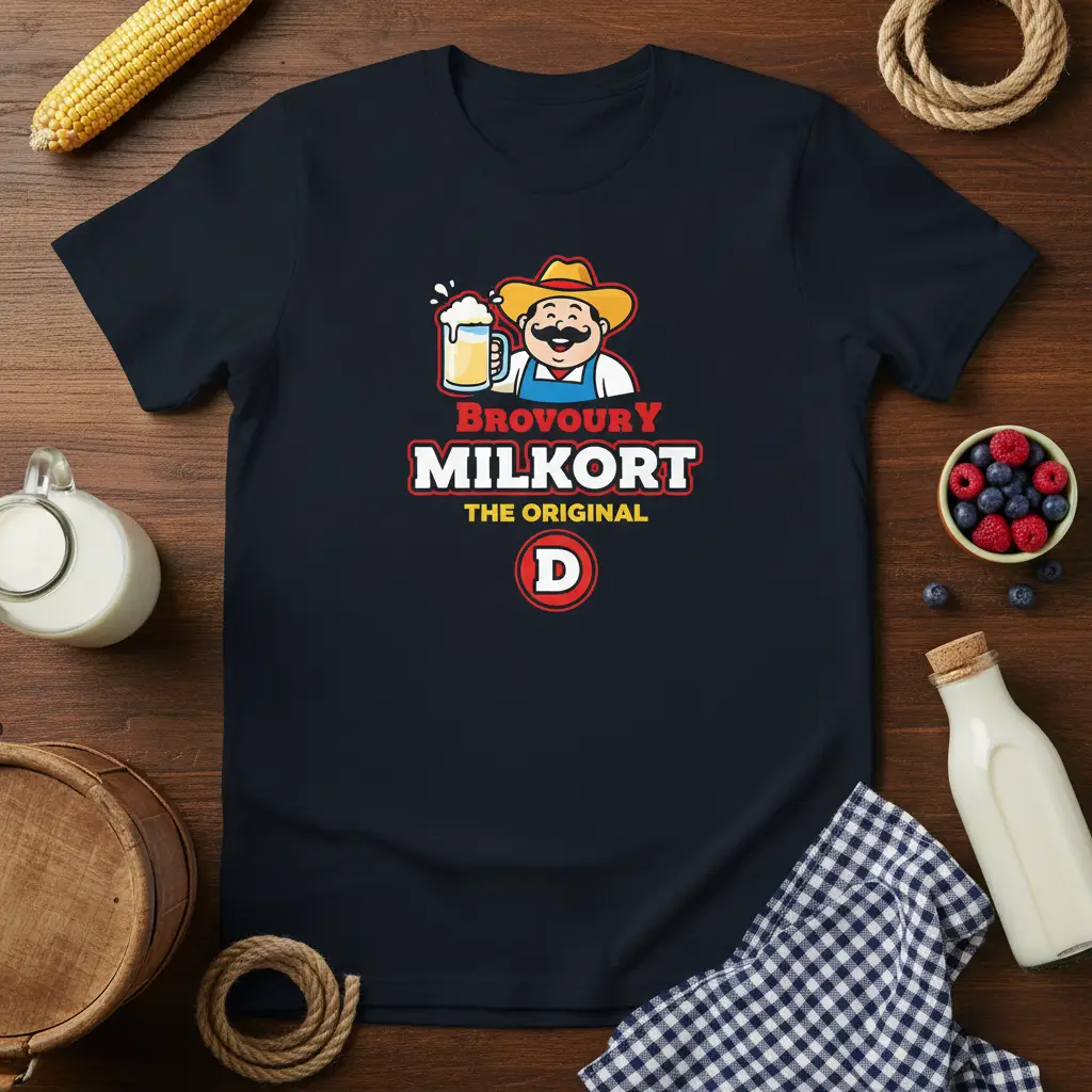 Brovoury Milkort The Original D is more than just a graphic on a t-shirt; it’s a statement piece that resonates with a unique sense of nostalgia and appreciation for distinctive branding. This design captures the essence of a classic, perhaps even fictional, establishment, blending a friendly mascot with bold typography to create an eye-catching visual. It appeals to those who love vintage aesthetics, quirky designs, and perhaps even a good story behind a brand. The combination of the farmer character, the prominent “MILKORT” text, and the “THE ORIGINAL D” tagline creates a memorable and intriguing look. This tee is perfect for sparking conversations and showcasing a sense of individuality through your apparel choices.