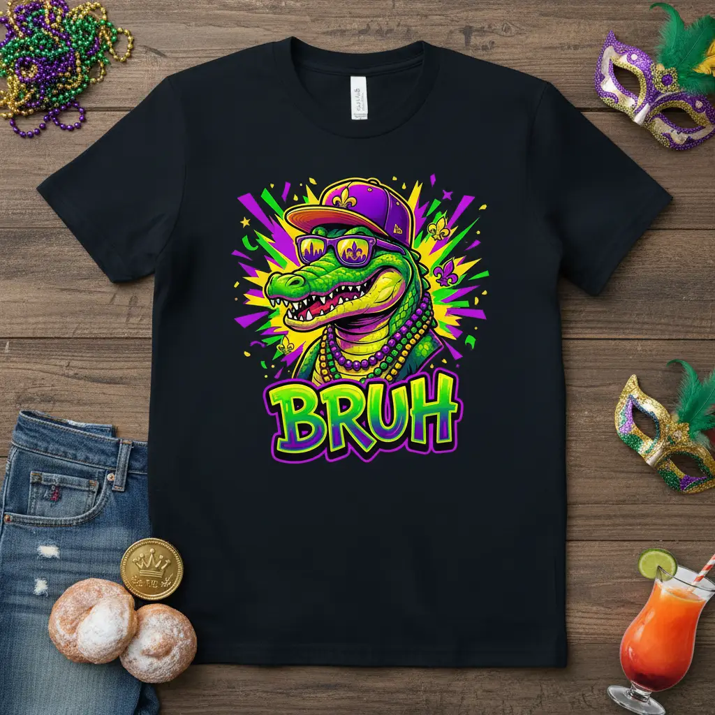 Bruh Alligator Mardi Gras T-Shirt for Festive Celebrations