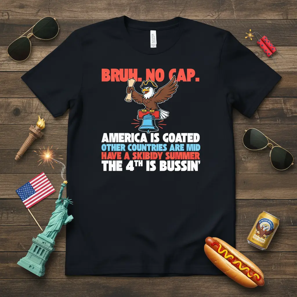 Bruh. No Cap. America is Goated: The Ultimate 4th of July Statement T-Shirt