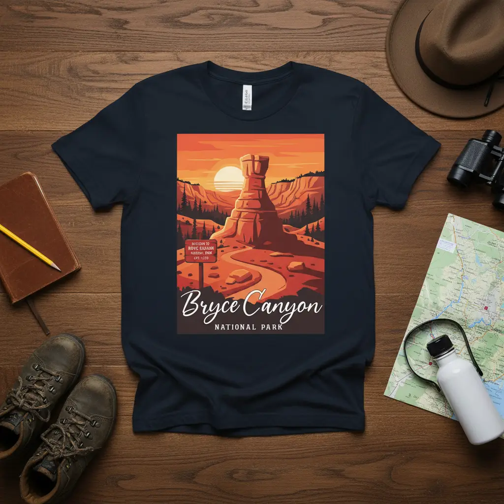 Pick from Black, Navy, Royal, Dark Heather, Red, and White to match your mood and wardrobe staples. Each colorway keeps the Bryce Canyon National Park design clear and photo-ready for everyday wear.