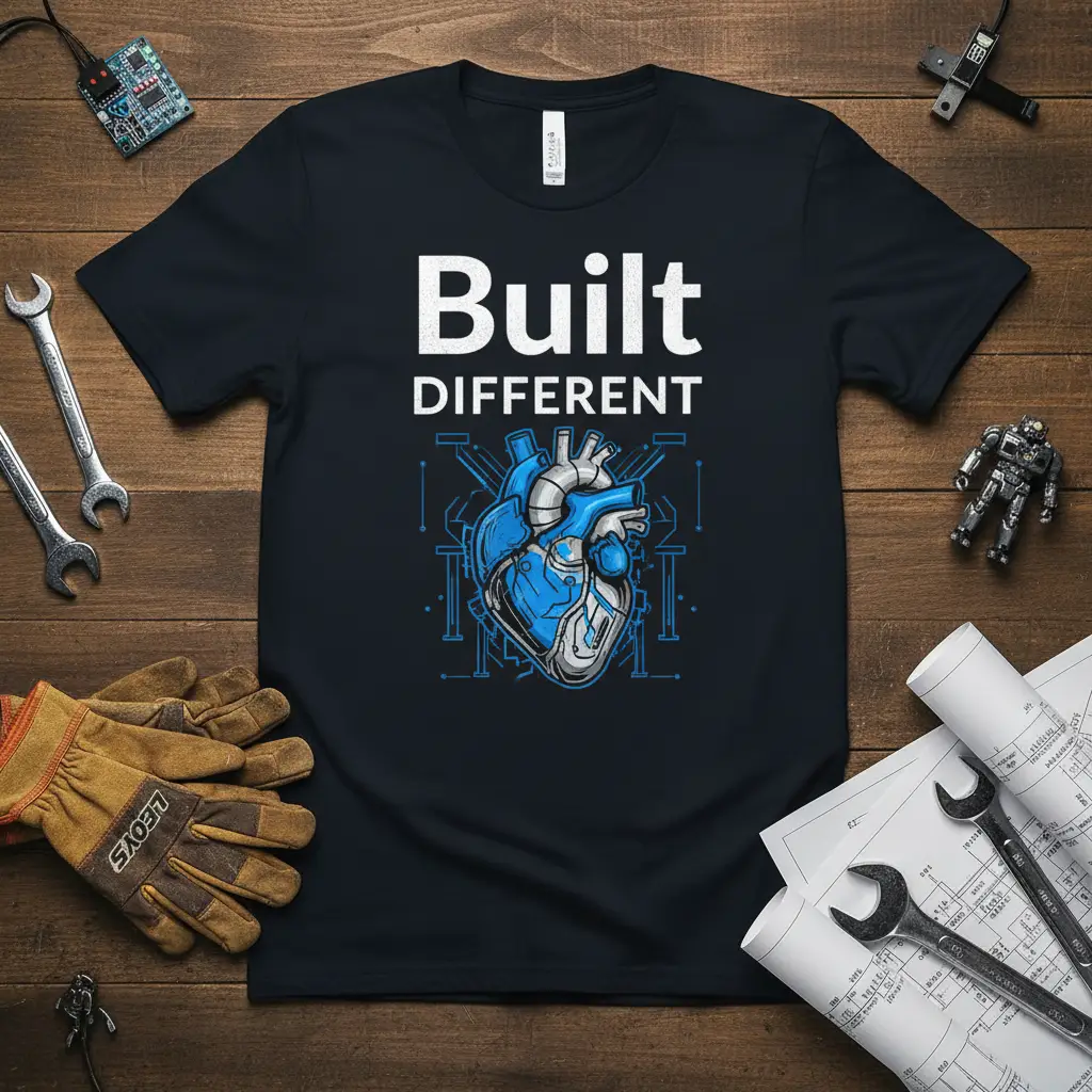 The “Built DIFFERENT” design is specifically curated for individuals who identify with a strong sense of self and a unique approach to life. The mechanical heart motif is a powerful metaphor for those who feel they are constructed with different parts, operating with a distinct purpose. It’s a visual representation of resilience, innovation, and a spirit that refuses to conform to the ordinary. This tee is perfect for showcasing your engineering mindset or simply celebrating the fact that you are wonderfully and uniquely you.