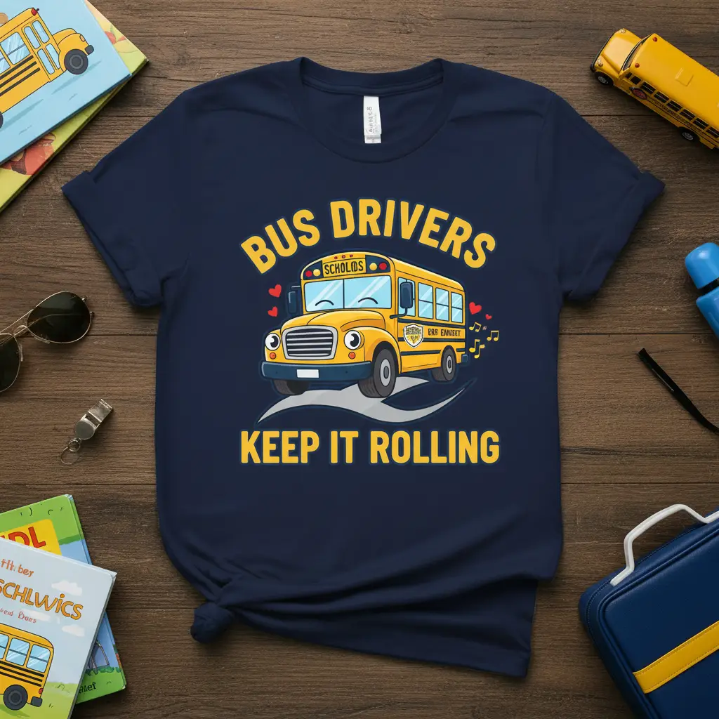 Bus Drivers Keep It Rolling with pride and dedication, ensuring our students reach their destinations safely every day. This t-shirt is a vibrant tribute to the unsung heroes of school transportation, capturing the spirit and hard work involved in their essential role. It’s designed for those who understand the importance of a smooth and cheerful ride, making it the perfect attire for school bus operators, transportation staff, or anyone who wants to show appreciation for these vital community members. The design combines fun graphics with a powerful message, celebrating the commitment that keeps our schools connected.