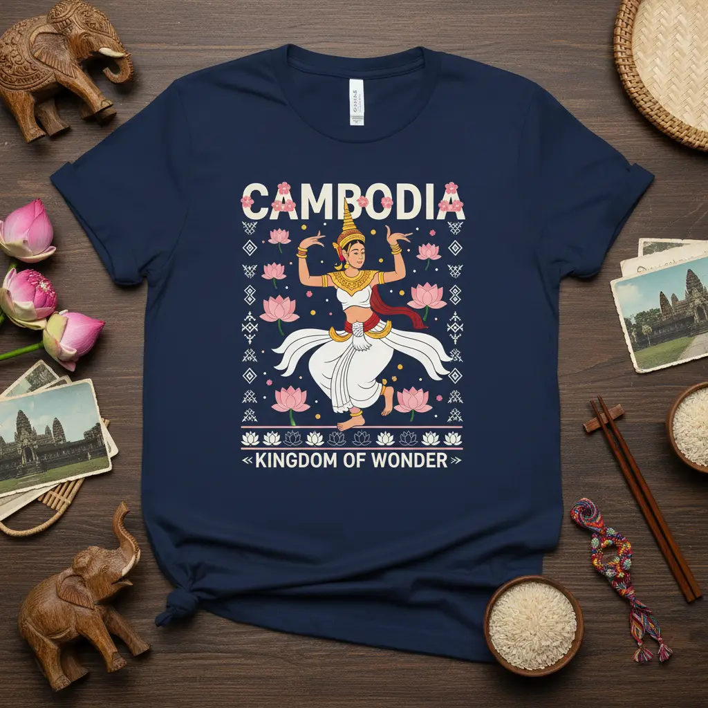Pick from Black, Navy, Royal, Dark Heather, Red, and White to match your mood and wardrobe staples. Each colorway keeps the Cambodia Kingdom of Wonder design clear and photo-ready for everyday wear.