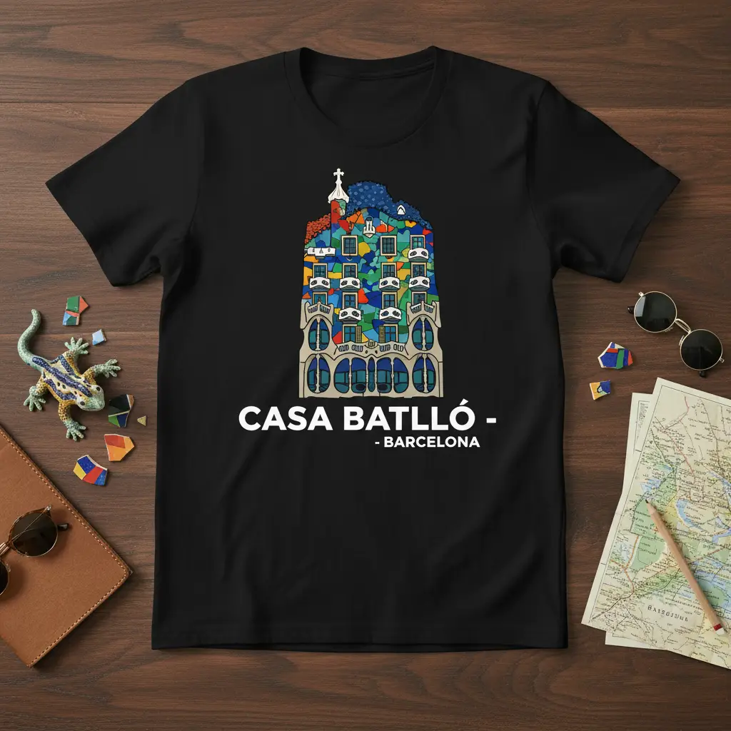 This Casa Batlló Barcelona design is printed on a comfortable and durable t-shirt, ensuring both style and longevity. Its eye-catching graphics make it a standout piece, perfect for casual outings, travel adventures, or simply relaxing at home. This shirt is a subtle yet powerful way to showcase your passion for iconic landmarks and artistic achievements.