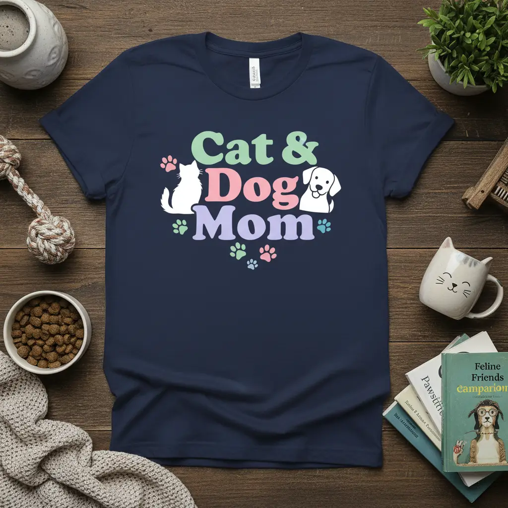 Cat & Dog Mom, this t-shirt is designed for the ultimate pet lover who can’t pick a favorite between their feline and canine companions. It’s a celebration of the unique joy that comes from sharing your life with both cats and dogs, embodying the spirit of a true multi-pet household. The design features a delightful blend of playful typography and charming animal illustrations, making it a standout piece for anyone who considers their pets their family. This shirt is more than just apparel; it’s a badge of honor for those who understand the double the love and double the fun that comes with being a cat and dog mom.