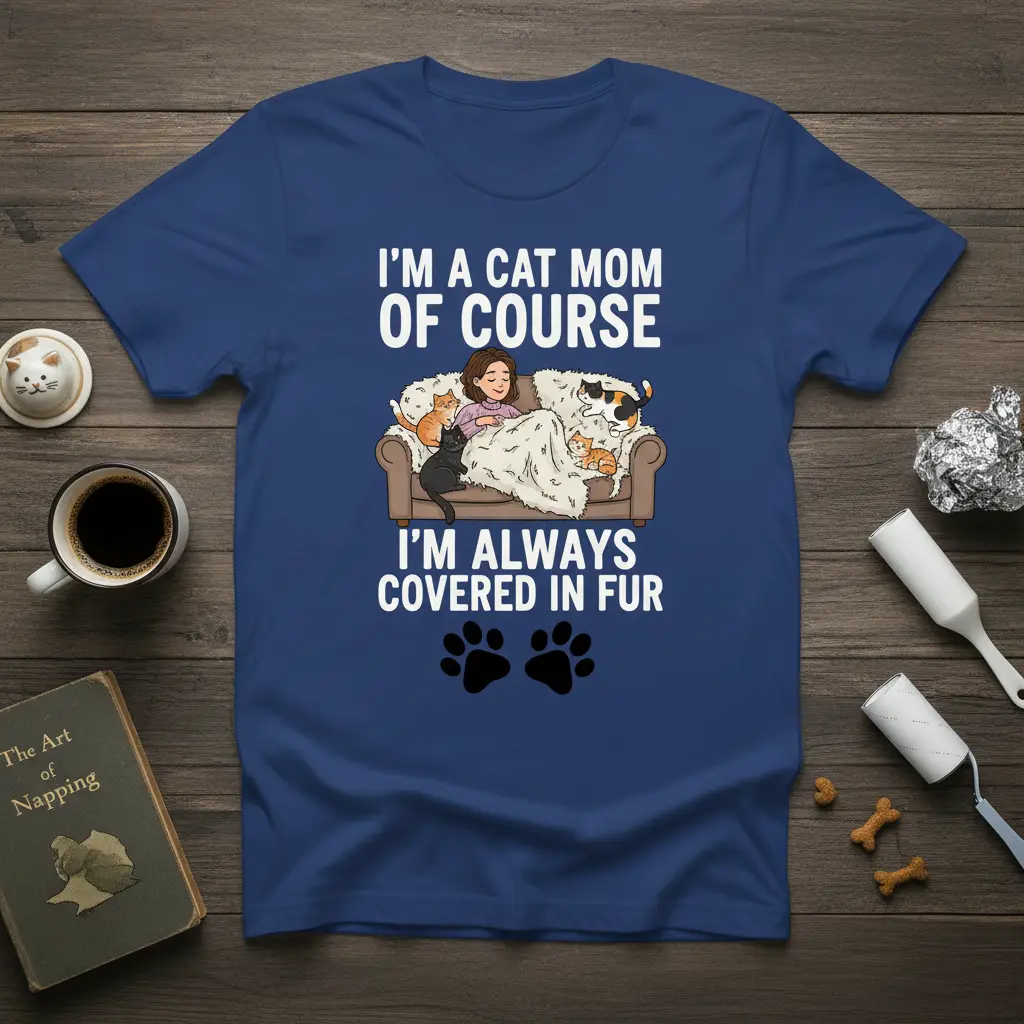 This shirt proudly displays the sentiment that resonates deeply with cat moms everywhere. It acknowledges the constant presence of fur on clothes, furniture, and essentially everywhere you go. The design is a playful yet honest representation of the daily reality for those devoted to their cats. It’s a conversation starter that instantly connects you with others who share the same passion and understand the joys and occasional messes of cat ownership.