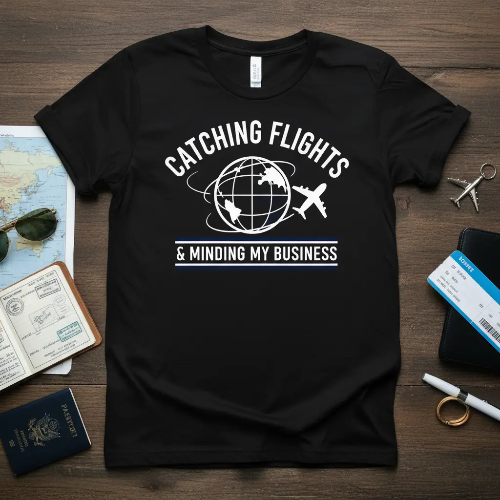 Catching Flights & Minding My Business T-Shirt for Travelers