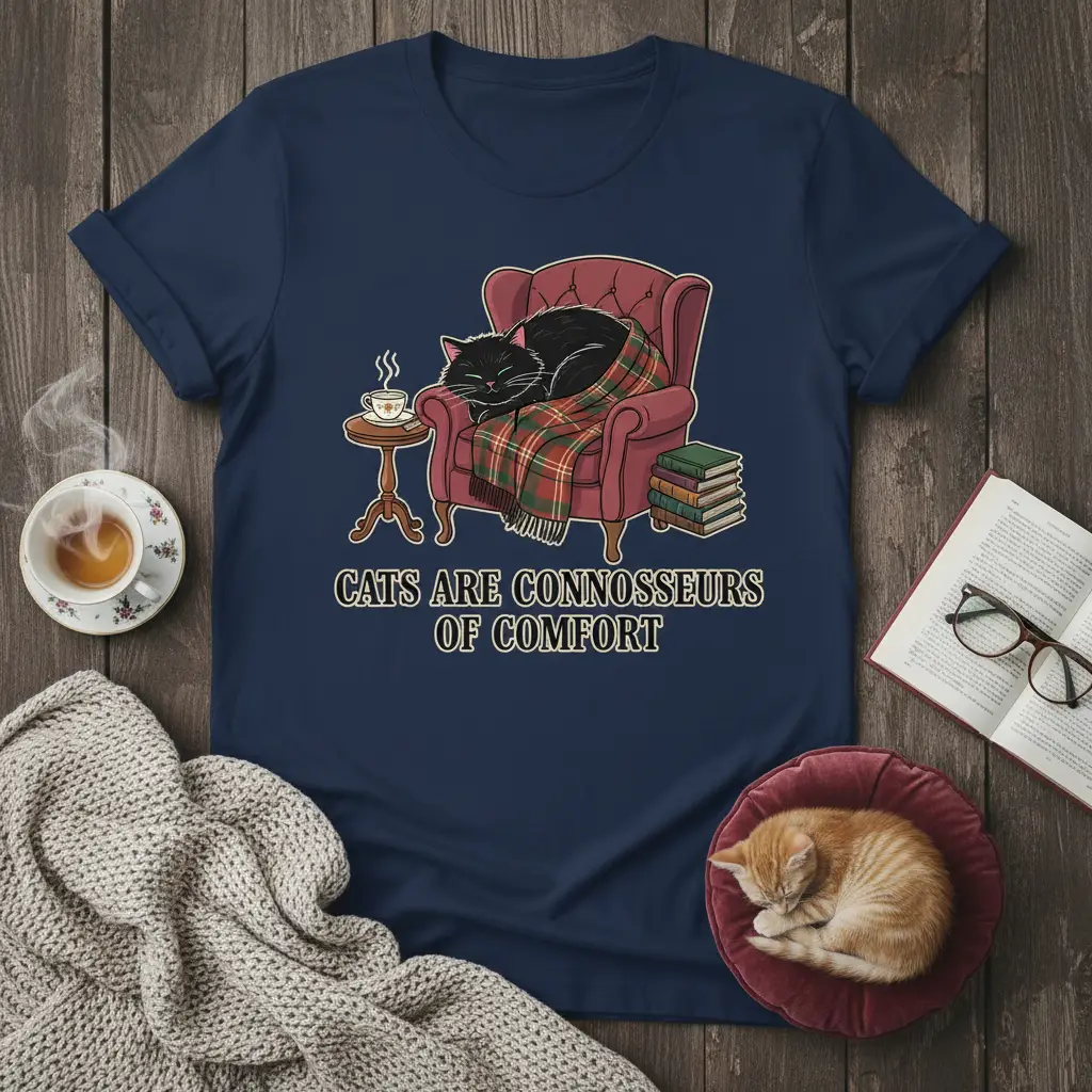 Looking for a thoughtful gift for the cat lover in your life? This “Cats Are Connosseurs Of Comfort” t-shirt is an ideal choice for birthdays, holidays, or just to show someone you care. It’s a gift that combines style, comfort, and a shared passion for our beloved feline companions.