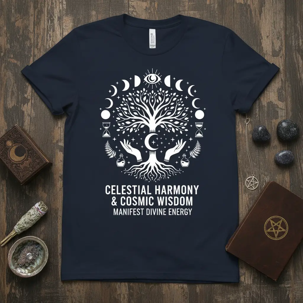 This apparel is more than just fashion; it’s a tool for personal empowerment and a celebration of the cosmos. The tree of life is a powerful symbol of interconnectedness, representing everything that is and was. Its roots anchor it to the earth while its branches reach towards the heavens, bridging the material and spiritual realms. This imagery, combined with the call to “Manifest Divine Energy,” inspires a sense of purpose and potential.