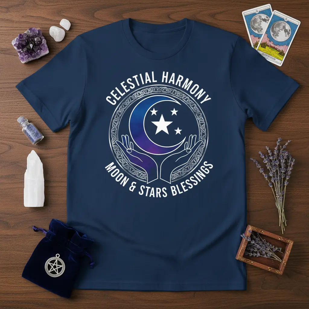 Shop the Celestial Harmony Moon & Stars Blessings T-Shirt Today