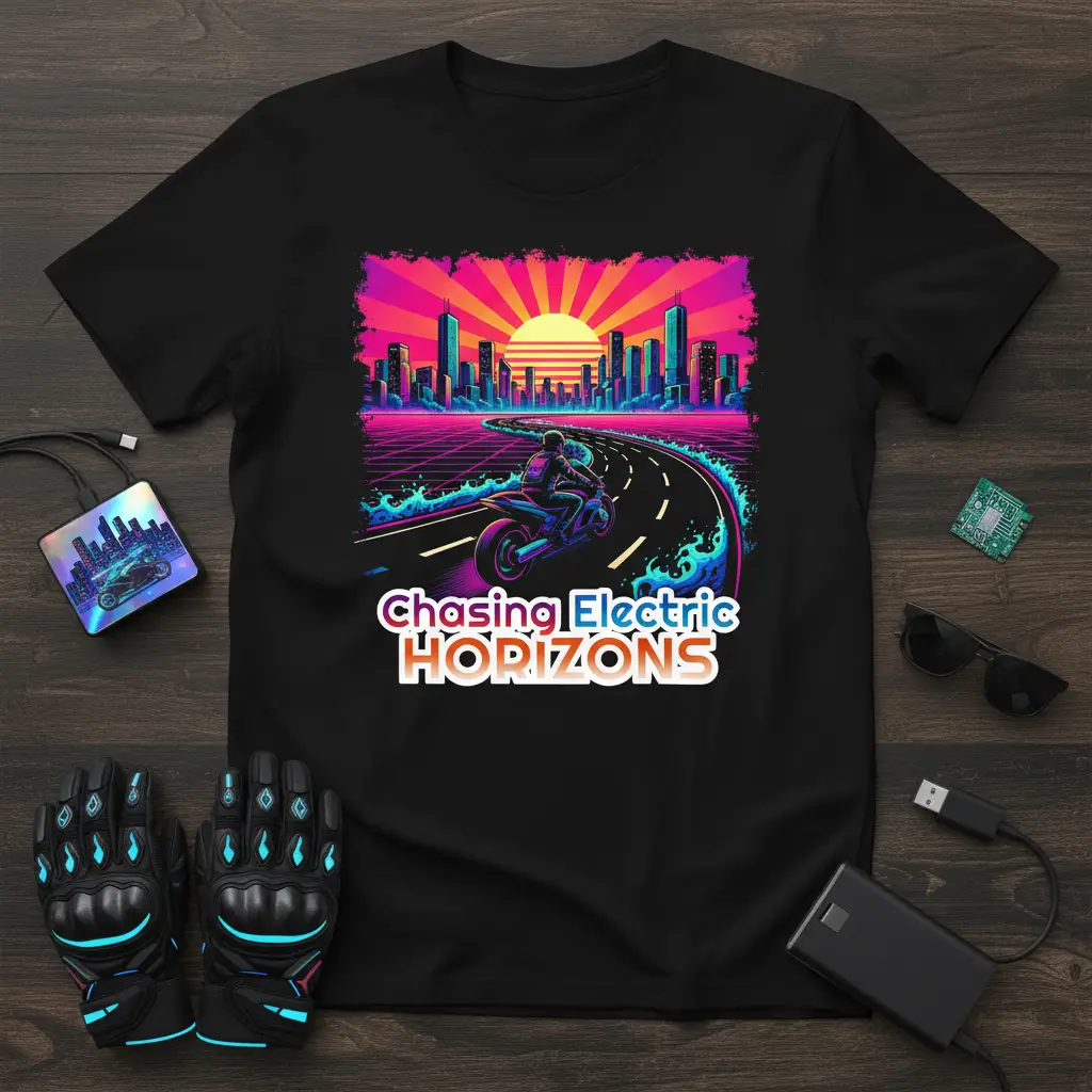 Looking for a unique gift for the electric motorcycle enthusiast, tech lover, or fan of retro-futuristic art? The Chasing Electric HORIZONS t-shirt is an excellent choice for birthdays, holidays, or any special occasion. Its distinctive design and comfortable wearability make it a thoughtful present that is sure to be appreciated. Gift this tee to someone who loves to chase new adventures and embrace the future of riding.
