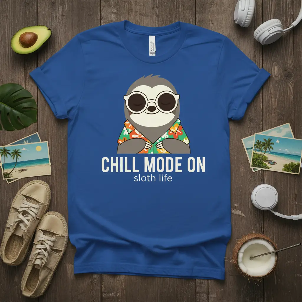 The “CHILL MODE ON sloth life” t-shirt is expertly designed for those who appreciate the art of relaxation. It features a cool, sunglasses-wearing sloth in a vibrant Hawaiian shirt, embodying the spirit of a tropical getaway. The prominent “CHILL MODE ON” text, paired with the “sloth life” descriptor, clearly communicates a message of ultimate ease and comfort. This design is a fantastic way to express your desire for a slower pace and a more relaxed approach to everyday life.